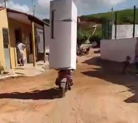 Na última sexta-feira (9), um vídeo chamou muita atênção. Um homem é flagrado transportando uma geladeira em uma motocicleta. Ao que tudo indica, as imagens foram feitas no Nordeste e viralizadas na rede Live Leak.