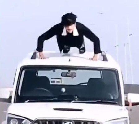 Um homem foi multado na Índia após fazer flexões em cima de um carro em movimento. Com a popularização do vídeo, a polícia identificou a placa e multou o homem, que foi obrigado a pedir desculpas e pedir que as pessoas não tentassem realizar o feito.