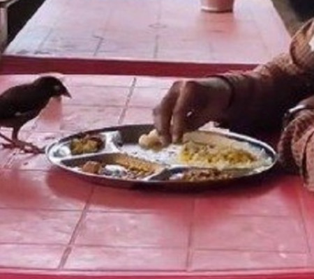 Inicialmente, contou o "India.com", o homem estava comendo sozinho em uma mesa de um restaurante simples (a cidade é desconhecida). Em determinado momento, o pássaro pousou na mesa e, sem cerimônia, começou a se servir. O caso ocorreu no fim de maio.