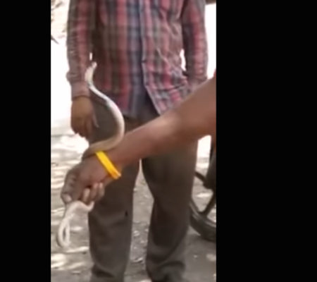 A cobra, que estava enrolada na mão do homem, levantou a cabeça e picou o homem várias vezes. Por sua vez, o capturador não demonstra qualquer reação enquanto tenta desenrolar a cobra de sua mão.