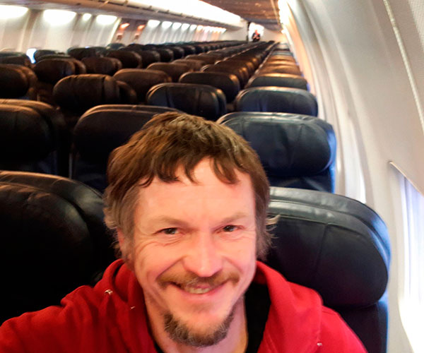 O turista lituano Skirmantas Strimaitis, que ia esquiar na Itália, surpreendeu-se ao entrar no avião que o levaria ao país, um Boeing 737-800, e ver que era o único passageiro a bordo.