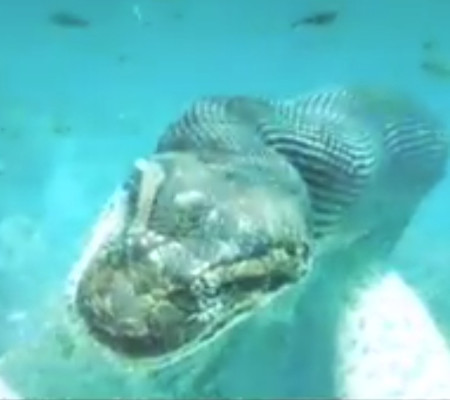 Morador de Mato Grosso do Sul registrou cenas impressionante ao ficar cara a cara com uma sucuri de aproximadamente 8 metros em um rio na região de Bonito. As imagens gravadas pelo homem mostram a cobra se alimentando de um porco queixada. As informações são do Midia Max.