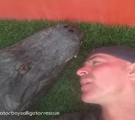 O grandalhão teve uma reação bastante incomum, ou melhor, não reagiu de maneira alguma ao homem deitado bem do lado. Paul Bedard, que é um experiente capturador de animais selvagens, teve um encontro estranho com um jacaré, que estava deitado tranquilamente no gramado de um abrigo de animais nos EUA.