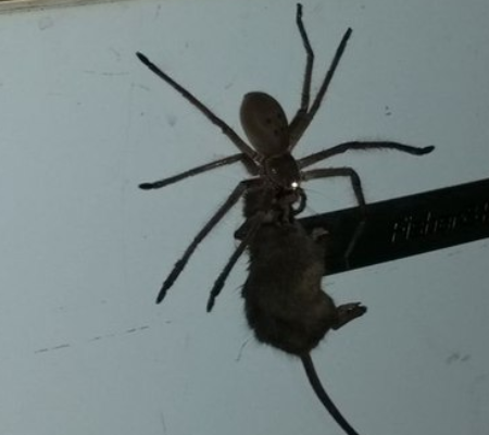 Nas imagens, que já foram visualizadas mais de 24 milhões de vezes no Facebook, uma aranha-caçadora-gigante (Sparassidae ) transporta um rato pela superfície de uma geladeira. "Eu estava prestes a sair para o trabalho e meu vizinho disse 'você quer ver algo legal?". Eu disse 'claro'. Então fui até a casa dele e encontrei isto", escreveu Jason, que mora na cidade de Coppabella, na Austrália.