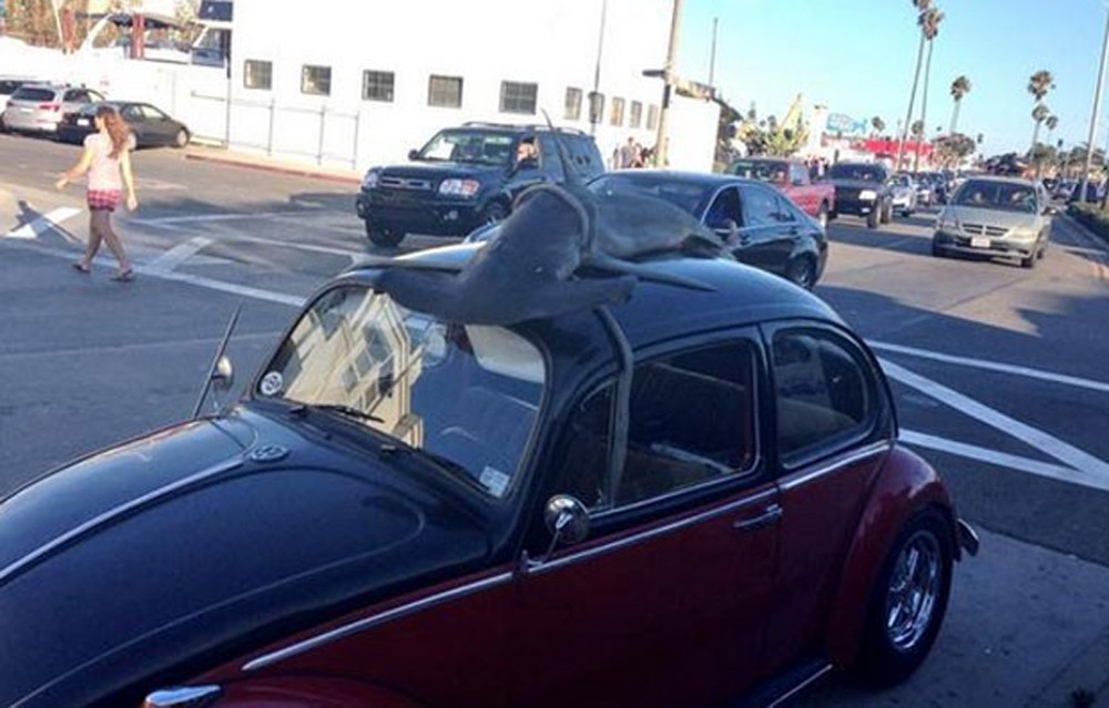 O americano Kory Archuleta flagrou uma cena bizarra na Califórnia (EUA). Ele fotografou o que parece ser um tubarão-martelo preso no topo de um fusca e publicou a imagem em sua conta no Twitter. Apesar das semelhanças com tubarão real, alguns internautas acreditam que animal seja apenas um enfeite colocado pelo dono do veículo.