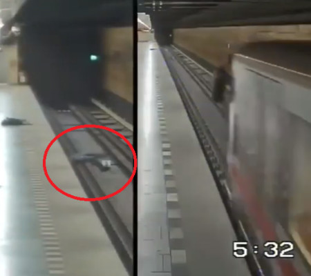 Ao analisarmos as gravações é possível notar ainda que por diferença de poucos segundos, o homem que cai no trilho consegue escapar de um atropelamento.