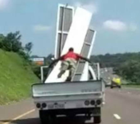 Um vídeo de um homem arriscando a sua vida ao transportar placas metálicas de forma perigosa se tornou viral nas redes sociais esta semana. Com informações do Metro.