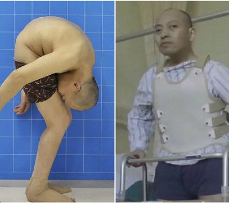 Aos 18 anos, o chinês Li Hua foi diagnosticado com espondilite anquilosante. A doença é uma artrite inflamatória que afeta a coluna vertebral e outras grandes articulações, o que deixa o paciente com uma postura curvada e dores agudas nas costas. No caso de Lin, hoje com 46 anos, a doença tomou proporções sinistras e o deixou MUITO curvado, a ponto dele só conseguir enxergar as próprias coxas e joelhos. Com informações do R7.