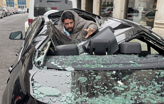 "Ouvi um grande estrondo e no começo não pensei que fosse uma pessoa", disse Christina Smith, que passava na rua no momento da queda. "A janela traseira do carro estourou. Então o cara pulou e começou a gritar."