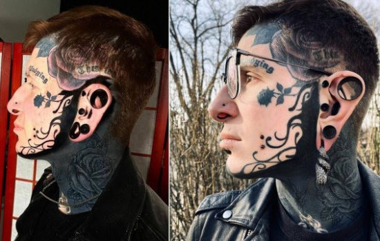 Homem tem as orelhas modificadas para virar 'queijo suíço' e corpo tatuado