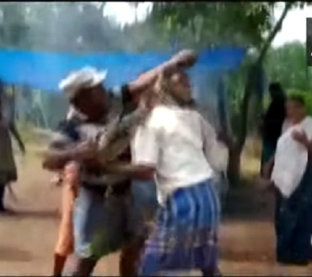 Imagens angustiantes mostram de que maneira os moradores locais lutaram para desembaraçar o réptil enrolado no pescoço do homem.