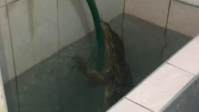 O lagarto, de 1,2 metro, estava dentro de um tanque cheio de água. O homem alega que removeu o animal pegando-o pela cauda e jogando-o no chão.