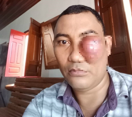 Homem vive há 2 anos com tumor do tamanho de laranja no olho