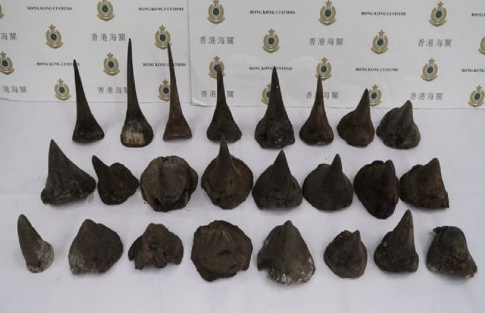 Autoridades do aeroporto de Hong Kong prenderam, na última semana, dois homens que tentavam contrabandear 40 quilos de chifres de rinoceronte por meio de tráfego aéreo, o que corresponde a um total de 24 chifres e 1 milhão de dólares. Segundo um grupo ambiental local, o contrabando, que estava sendo transportado em duas caixas de papelão, representou 20% do total de apreensões de chifres de rinoceronte feitas desde 2013. Os contrabandistas, de 28 e 33 anos, vinham de Johannesburgo, na África do Sul, e tinham como destino a cidade de Ho Chi Minh, no Vietnã.