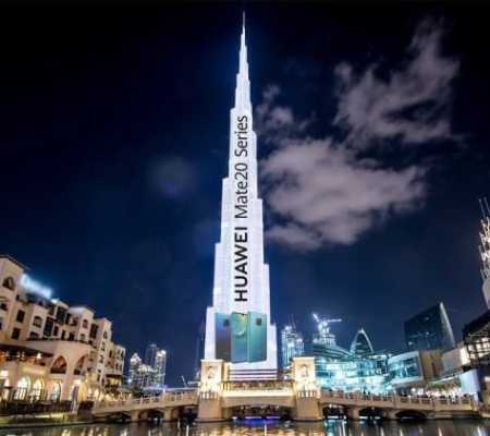 Para celebrar o momento, o rei de Dubai fez um anúncio exclusivo de três minutos (US$ 1 milhão) para o smartphone Huawei Mate 20 no prédio Burj Khalifa. O rei chegou a ordenar que os prédios a volta da apresentação desligassem todas as suas luzes. O anúncio foi feito de graça para a Huawei.