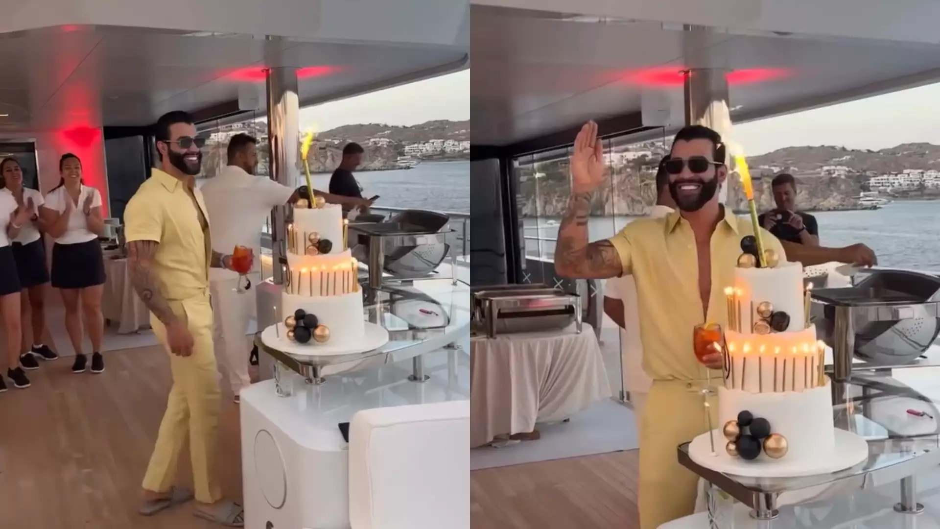 Os 35 anos de Gusttavo Lima teve vinho de R$ 80 mil e cheios políticos na Grécia; veja as fotos da super comemoração em alto mar de luxo.