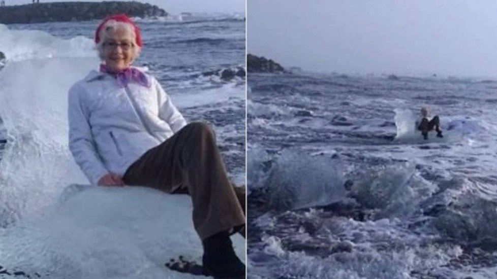 Uma idosa americana que estava de férias com um filho na Islândia achou à beira-mar uma formação de gelo que lembrava um trono. Judith Streng decidiu se sentar e posar para fotos.