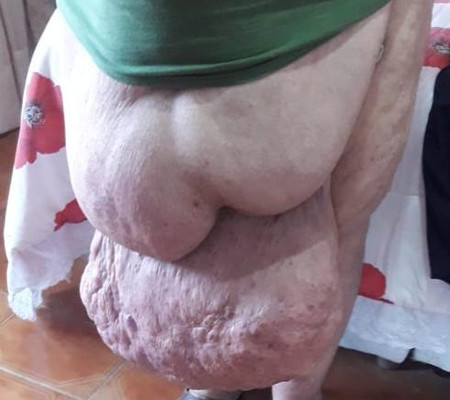 Um idoso de 71 anos aguarda, há quase um ano, pela cirurgia para retirada de uma grande hérnia que tomou conta de seu abdômen, prejudicou a mobilidade e causa crises semanais de infecção. A filha do idoso conta que a hérnia, que começou 'do tamanho de um limão', já pesa cerca de 30 kg. A família, que é natural de Praia Grande, no litoral de São Paulo, percebeu a presença da hérnia no abdômen do idoso há cerca de quatro anos, quando a estrutura começou a provocar feridas.