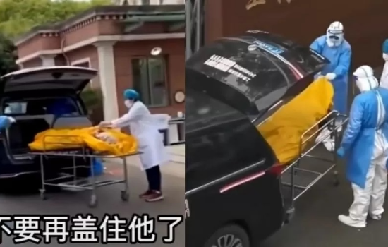 Vídeos publicados em redes sociais mostram a equipe médica colocando o corpo do homem em um carro, que seria levado para um crematório, segundo site de notícias Dongfang Daily.