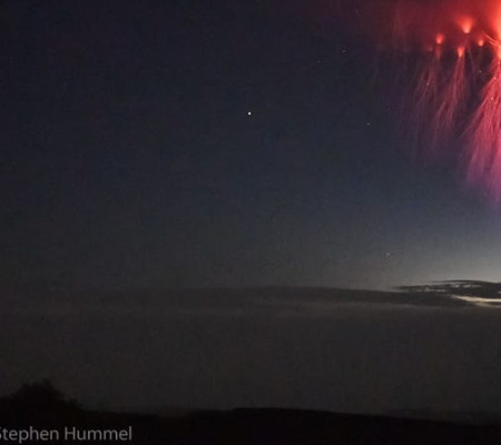 O fenômeno é raro de se ver: dura apenas décimos de segundo e pode ser difícil de ver do solo, pois geralmente é obscurecido por nuvens de tempestade. Mas Stephen Hummel, um especialista em céus escuros do Observatório McDonald, capturou uma imagem espetacular de um desses sprites em 2 de julho (mostrado acima) de um cume no Monte Locke, no Texas.