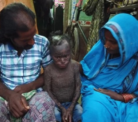 Jagannath, de apenas 10 anos, precisa tomar um banho quente por hora e cobrir o corpo com creme hidratante várias vezes ao dia para aliviar sintomas dolorosos da sua condição rara. O menino, que vive no distrito de Ganjam, na Índia, possui uma pele de textura muito peculiar: escura, muito grossa e quebradiça, com aparência escamosa. As informações são do IG.