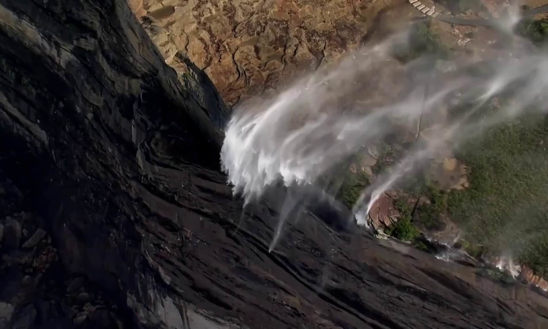 Cachoeiras no Royal National Park estão soprando para trás, enquanto ondas enormes batem na costa abaixo. Veja: