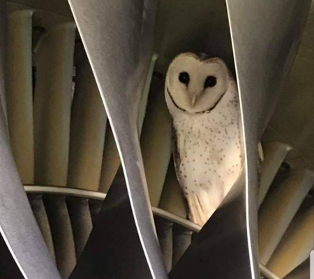 Os engenheiros de voos sempre realizam uma vistoria antes do avião decolar. Mas um caso inusitado foi registrado no Aeroporto de Melbourne. Os engenheiros da Virgin Australia encontraram uma surpresa inusitada no momento que inspecionavam a aeronave Boeing 737-800. Eles encontraram uma coruja descansando dentro de um dos motores do avião.