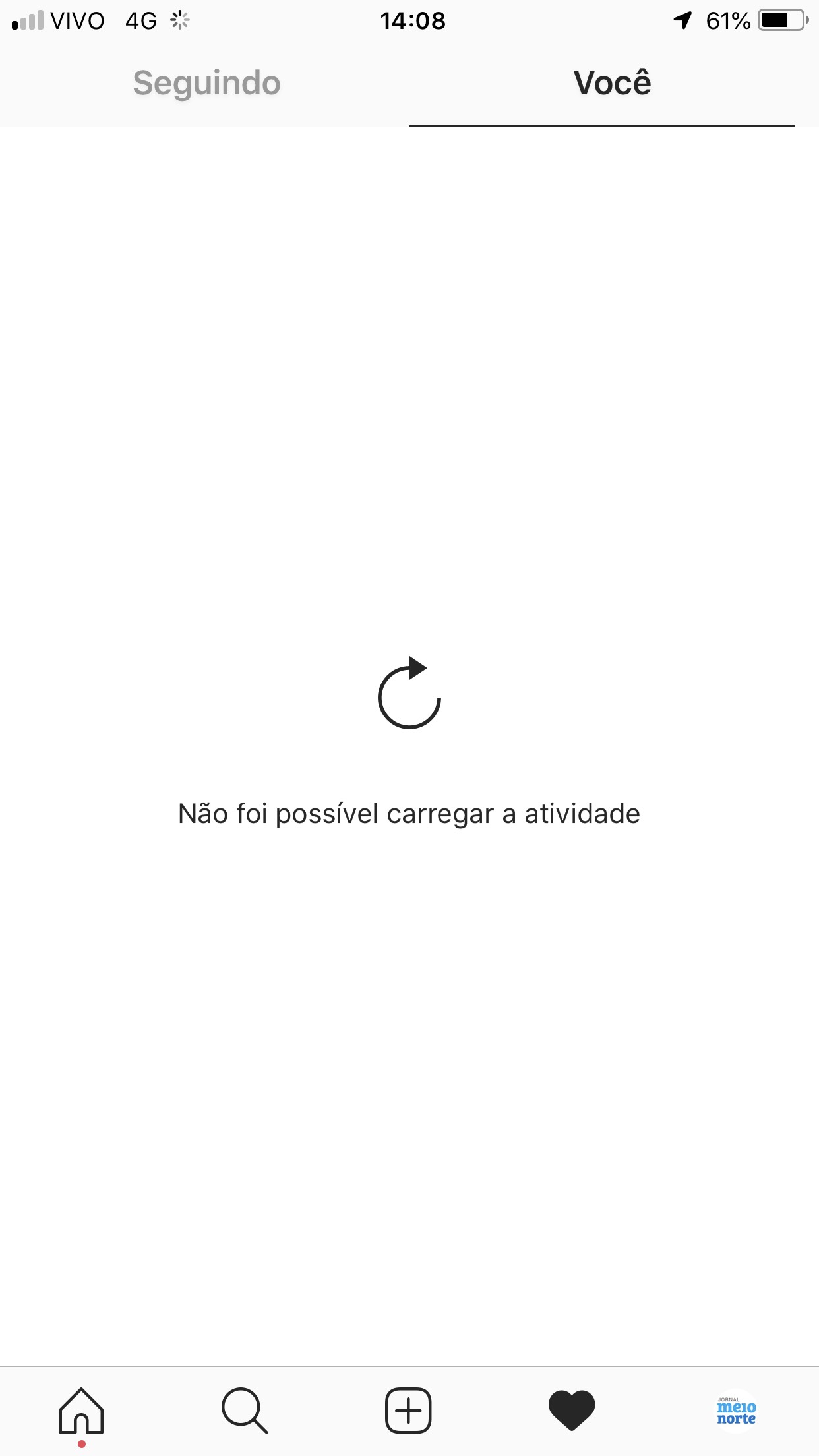 Instagram não apresenta notificações