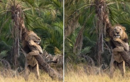 Julius contou que, enquanto tentava fotografar filhotes, percebeu que um leão dirigiu-se me direção a uma árvore a abraçou.