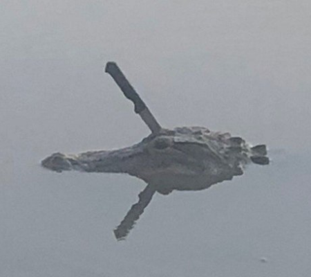 Um aligátor (uma espécie de jacaré americano) foi flagrado nadando na última quinta-feira (13) com uma faca cravada na cabeça em um lago da cidade de Sugar Lake, no Texas. Com informações do G1.