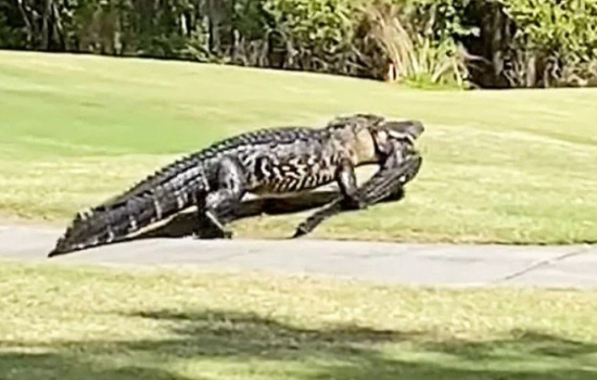 Os campos verdejantes da Flórida já costumam ser arenas para os grandes jacarés locais desfilarem, brigarem e até acasalarem. Mas uma moradora capturou um momento insano até para os répteis da região: um jacaré foi visto andando com outro jacaré já morto na boca, em uma cena assustadora de canibalismo.