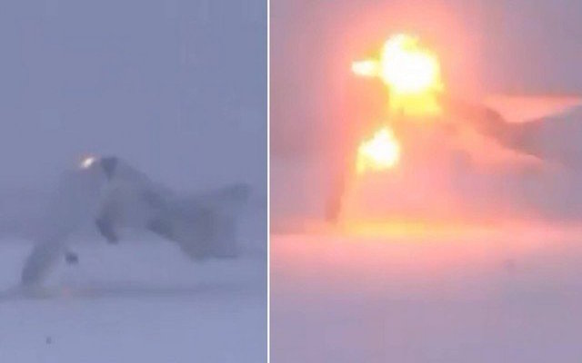 Um jato que aterrissava na base de Olenya, na gelada região ártica de Murmansk (Rússia), sofreu um acidente impressionante na semana passada. O Tu-22M3 se partiu em dois e explodiu ao tocar o solo.