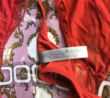 Em seu Twitter, a jovem publicou a foto da calcinha e, pelo que podemos perceber, ela está manchada de cocô. Na publicação, ela questiona a empresa em que fez a compra para saber como poderia receber uma peça assim em seu pedido. “Repugnante”, escreve na postagem, que teve seis mil curtidas e quase dois mil compartilhamentos.