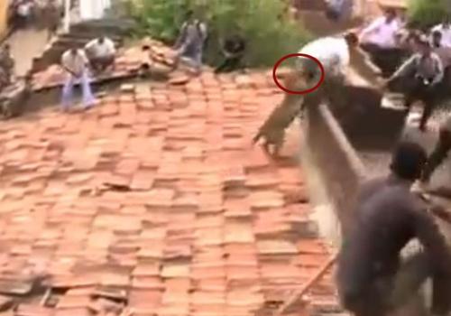 tentando afugentar o leopardo, mas, quando o animal salta sobre o telhado, os moradores fogem. Um deles, no entanto, acabou levando uma mordida nas nádegas durante a fuga.
