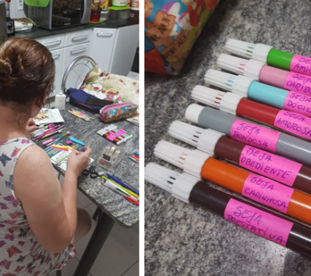 O irmão mais velho da Lili, Gabriel, compartilhou no Twitter fotos da mãe etiquetando os lápis e canetinhas da filha, nessa terça-feira (28). A iniciativa comoveu os internautas e rapidamente viralizou, com mais de 200 mil curtidas e mais de 63 mil compartilhamentos.