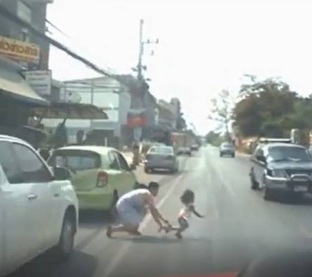 Mãe se lança na estrada para salvar filha de atropelamento;vídeo