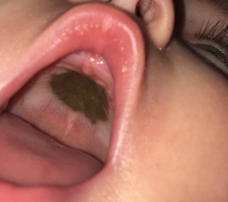 Darian Depreta decidiu levar sua filha, Bella, ao médico depois que uma mancha escura apareceu no céu da sua boca. Conforme conta em uma publicação em seu perfil do Facebook, a mulher diz que tentou limpar para ver se conseguia removê-la, mas não teve sucesso. Por isso, em seguida, junto com sua mãe, ela levou a pequena para o hospital. As informações são do IG.