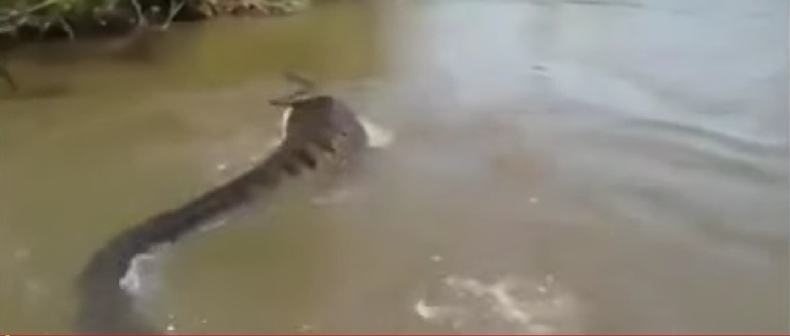 O animal encontrado pelos corajosos pescadores é a Anaconda Amarela, da espécie Eunectes notaeus. O nome vem do grego e significa “boa nadadora”. Faz sentido.