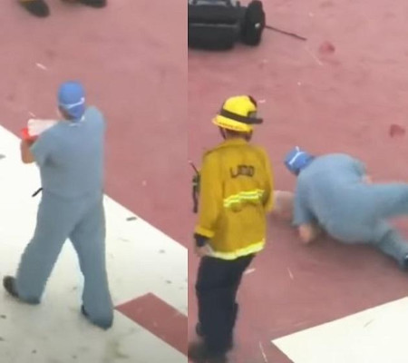 No vídeo divulgado pelo canal FOX 5 San Diego é possível ver o trabalho dos bombeiros para socorrer as três pessoas que estavam a bordo do helicóptero e o momento em que um médico tropeça em um objeto e deixa o coração cair. Em seguida, outros profissionais de saúde correm para ajudar o colega a se levantar e pegar o coração.
