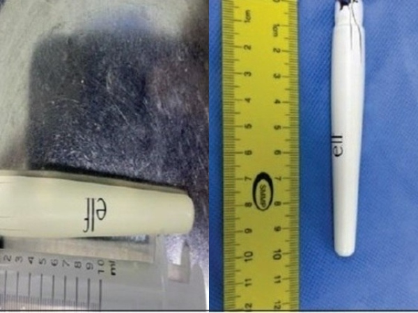 Médicos removem caneta de 10 cm da bexiga de adolescente | Foto: Annal of Urology Os profissionais disseram que a jovem foi admitida no pronto-socorro com um quadro de disúria, que é dor ou desconforto ao urinar. "Seus sintomas eram angustiantes, com dor pélvica, hematúria [sangue na urina] e dor suprapúbica [púbis], após a inserção da caneta na bexiga urinária", descreveram.