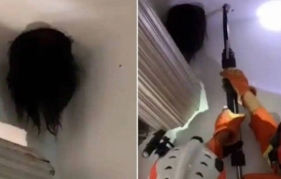 Um casal na China se assustou ao ver uma cabeça pendurada no teto de sua casa. O casal, morador de Puding (província de Guizhou, China) ficou chocado ao ver que a filha enfiou a cabeça num buraco.