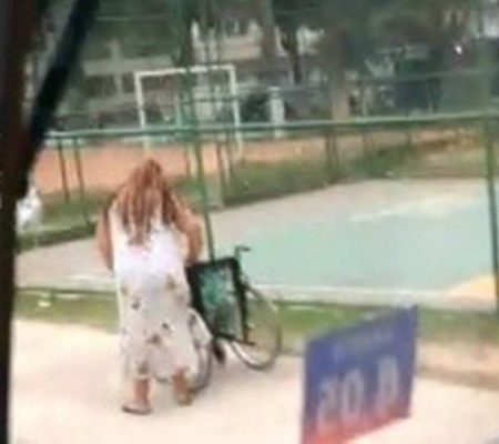 As imagens, feitas de um outro coletivo, mostram inicialmente a mulher caminhando tranquilamente pela calçada empurrando a cadeira de rodas. Quando chega mais perto do ponto ela se senta, sem se preocupar de estar sendo observada — várias pessoas passam por ela nesse momento — e completa o trajeto já no papel de cadeirante.