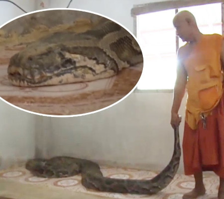 Ele mantinha a cobra em seu quarto e a alimentava todos os dias. Os habitantes locais até acreditam que a serpente tem uma capacidade milagrosa de curar doenças. Filmagens de quarta-feira (05/02) mostram a píton de 7 metros de comprimento enrolada em torno do monge idoso enquanto os habitantes locais visitam para adorá-lo.