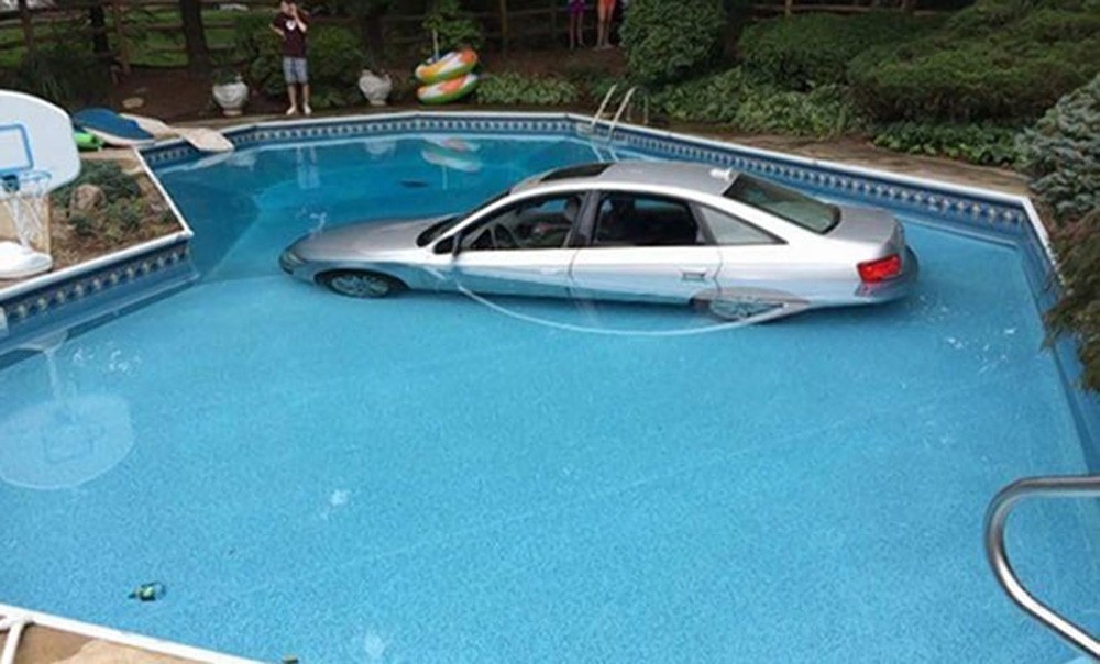 Um motorista de 84 anos confundiu o pedal do freio com o do acelerador e parou seu carro na piscina da casa de sua filha em Wyckoff, no estado de Nova Jérsei (EUA).