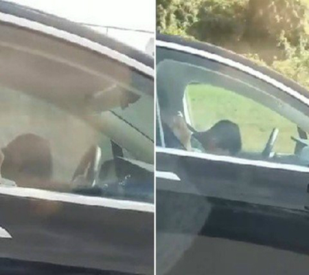 O motorista que gravou o registro buzinou várias vezes para despertar a atenção do condutor ao lado, mas não obteve sucesso.