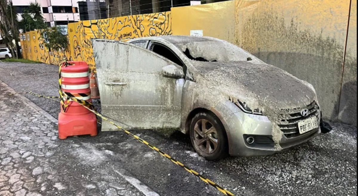 Um carro estacionado ao lado de uma obra em Brasília foi destruído ao ser totalmente coberto por concreto na manhã de quarta-feira (8). O incidente aconteceu na quadra 402, próximo ao bloco N. A proprietária do veículo, a esteticista Camila Barros, contou que foi avisada pelo porteiro e desceu em estado de choque para conferir o ocorrido.