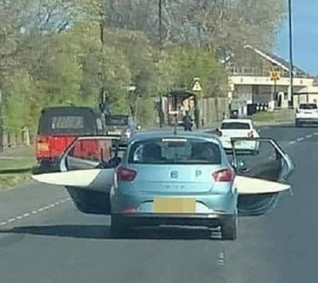 Um motorista da cidade de Northumbria (Inglaterra) foi muito além de uma "simples" irregularidade. Ele acomodou em seu carro de passeio uma embarcação de mais de 3 metros de comprimento.