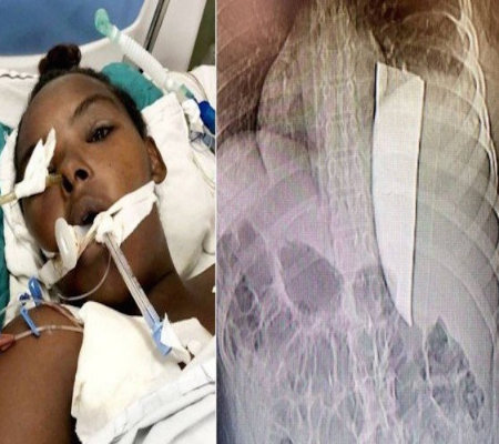 Só uma semana depois, quando o quadro se agravou, Kume procurou um hospital para nova avaliação. Desta vez, o raio-X registrou a presença da lâmina, de 28 centímetros, nas costas da paciente. O exame mostrou que o objeto cortante havia atingido o fígado, a principal artéria do coração e um dos pulmões antes de parar no pâncreas.