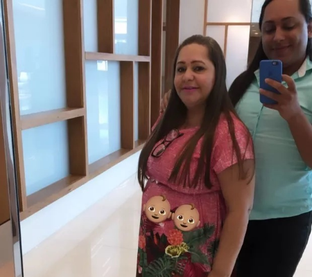 Após a decisão, tanto Valdira quanto Marcelo passaram por avaliações psicológicas ao longo de três meses, para ajudar a absorver o grande passo que eles dariam a seguir. Esta, aliás, é uma das exigências do Conselho Federal de Medicina (CFM) para a realização da produção independente com barriga solidária. Só depois disso, a família iniciou o tratamento, há pouco mais de 2 anos. Valdira e Marcelo Junior já choraram muito nos ombros um do outro ao longo das quatro tentativas de engravidar. O primeiro negativo veio no início de 2018, seguido por um positivo, já em junho passo, que os deixou muito animados. "Contei para todo mundo, já começamos a fazer vários planos", lembra. Mas, o ultrassom deixou claro que havia apenas um saco gestacional sem embrião. Foi difícil. Mas eles prosseguiram. A terceira tentativa foi um ouro negativo, em dezembro do ano passado. Foi quando Valdira decidiu que a próxima tentativa seria a última. Para a alegria de ambos, a gravidez vingou. E não de apenas um bebê, mas um casal de gêmeos, como eles sempre sonharam. “Quando fomos fazer o ultrassom, o Junior já viu de cara que eram dois e estragou a surpresa que o médico queria fazer”, conta ela, emocionada.