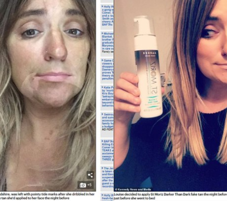 Louise Harper é uma cantora de Hertfordshire, Inglaterra. Ela estava se preparando para fazer um show e, na noite anterior ao evento, decidiu apostar no bronzeameto artificial. O resultado, não saiu como ela esperava, já que acabou ficando com várias manchas no rosto. As informações são do IG.